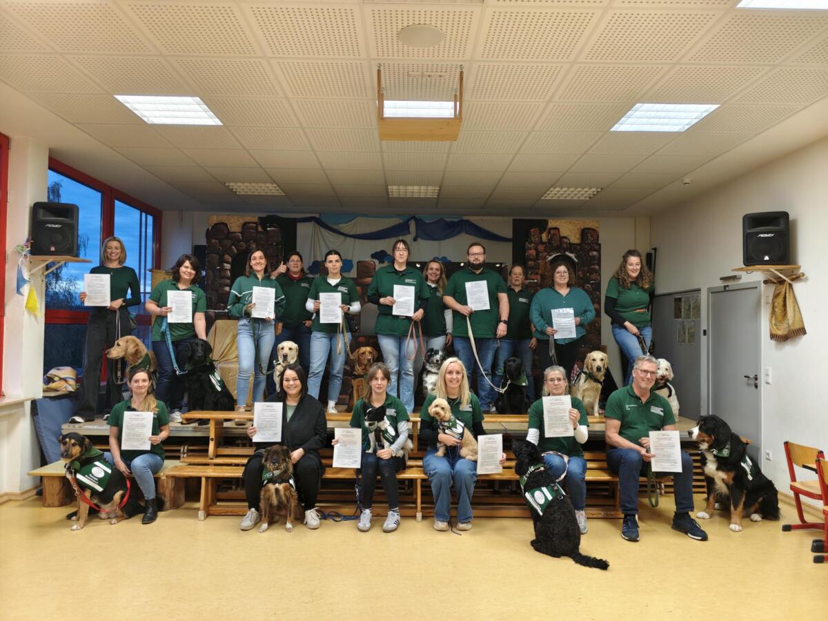 Ein erfolgreiches Jahr geht so langsam zu Ende. Zum Finale wurden am 13. November 14 Therapie-Besuchshund- und Schulhund-RLP-Team zertifiziert bzw. rezertifiziert. Souverän zeigten alle Teams, was sie in den vergangen Monaten in ihren Ausbildungskursen gelernt haben. Herzlichen Glückwunsch an alle Teams! Ebenso hat mich das große Interesse an unserem Infoabend für diese beiden Ausbidungsbereiche gefreut. Am 05. Dezember geht es mit der ersten Statusaufnahme für die Ausbildungskurse 2026 los.