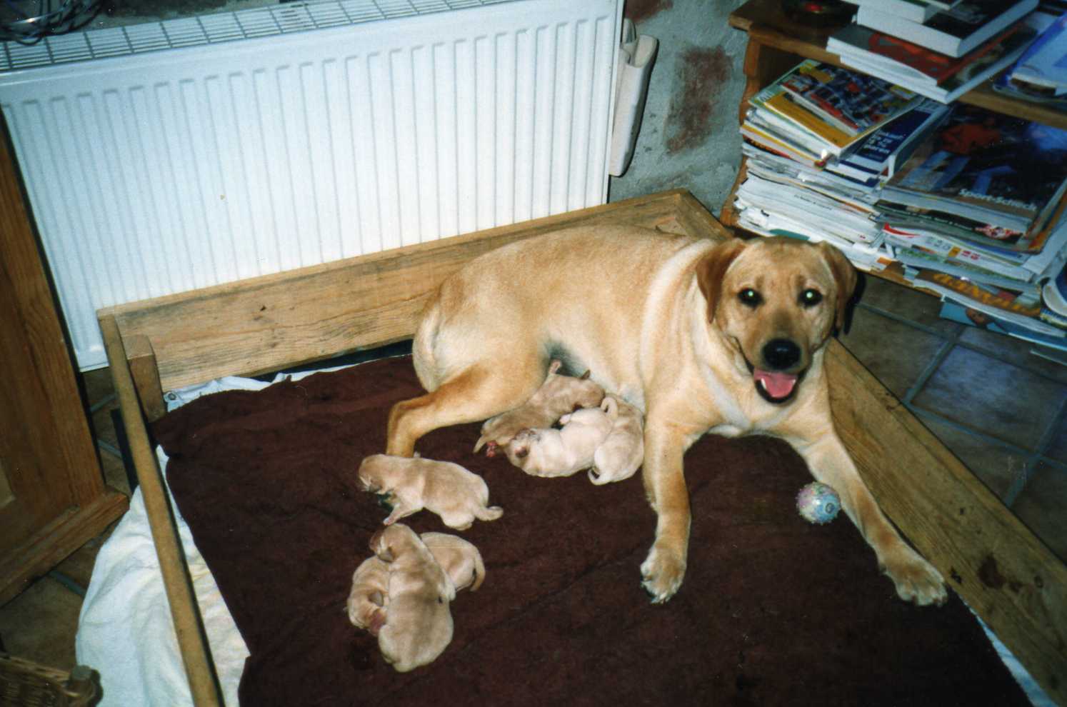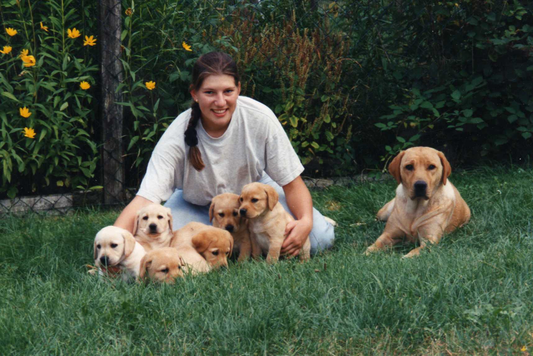 1993: Als ich 16 Jahre alt war, wünschte ich mir nichts sehnlicher als einen eigenen Hund. Da in Deutschland die Rasse Labrador Retriever noch sehr unbekannt und wenig verbreitet war, fuhr ich mit meinem Vater nach Dänemark. Mit meinen hart ersparten 1000,- DM Taschengeld im Gepäck ging die Reise los.